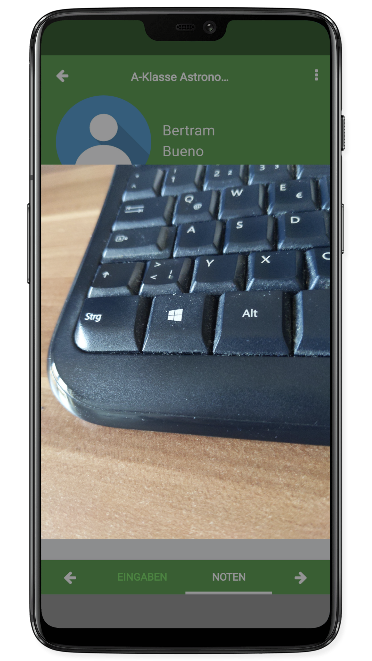 Hier sieht man den Text und das Bild. Denn auf dieser Seite sollen alle Informationen zum Schüler zusammengefasst sein.