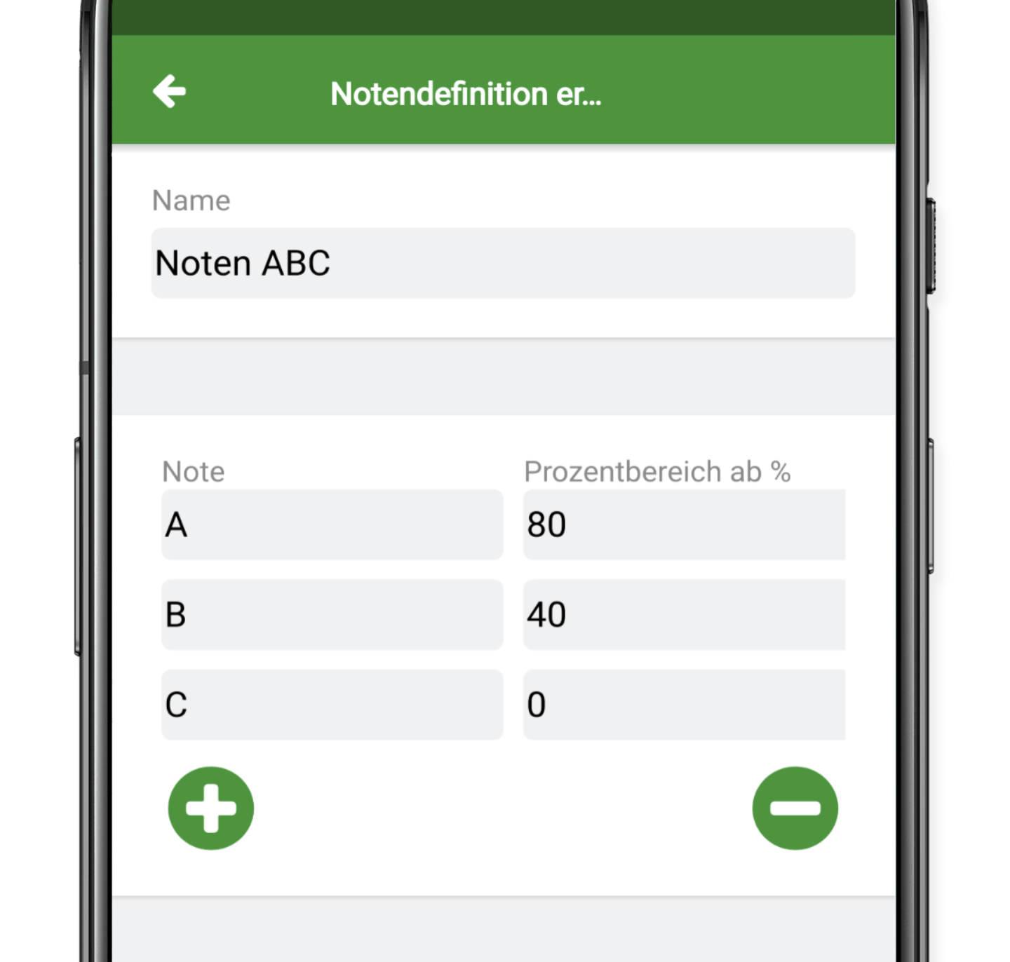Dieses Bewertungsschema ist vorgegeben und kann geändert werden. Welche Noten den Prozentwerten zugeordnet werden, können Sie selbst frei definieren.